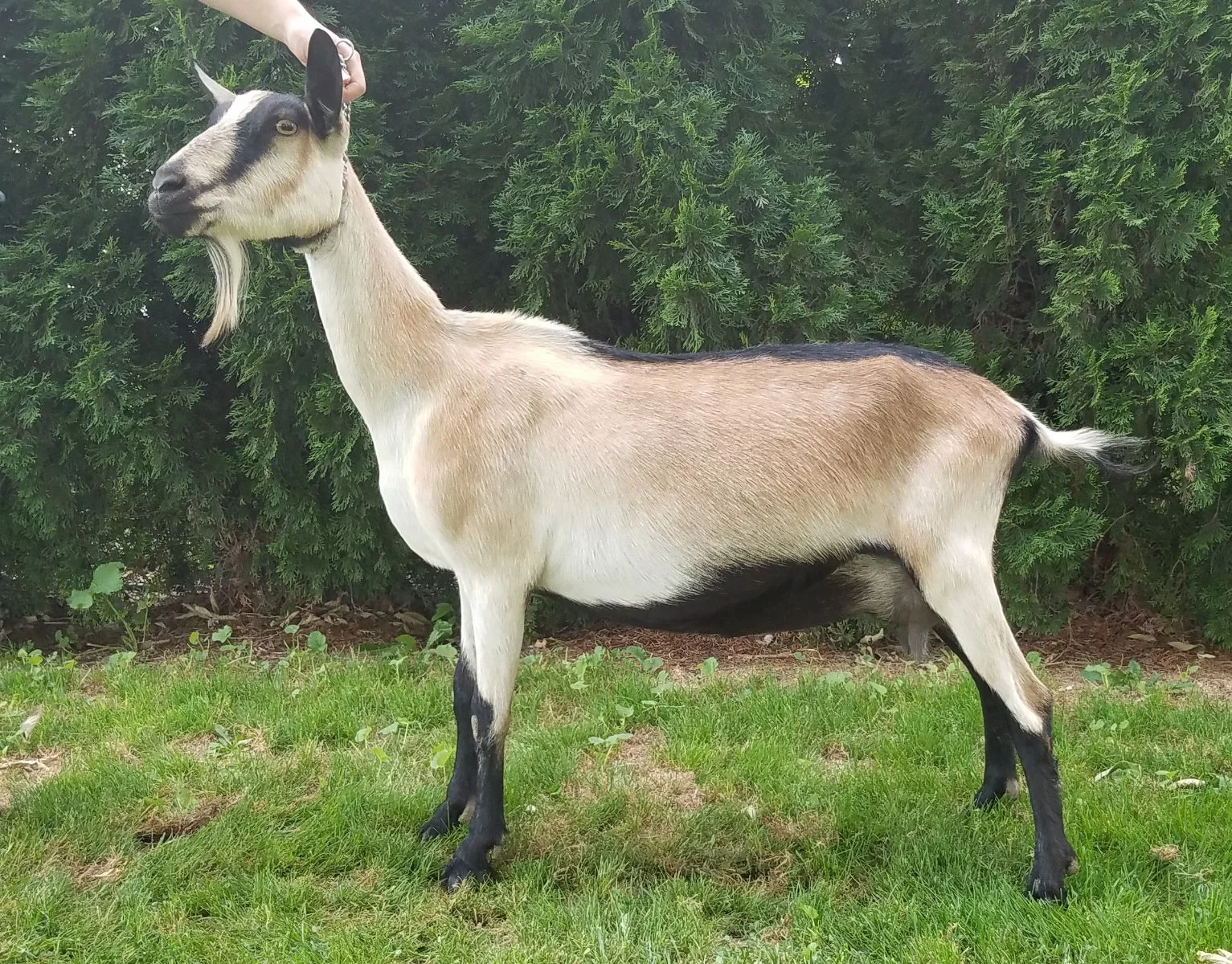 Meet Creekside FS Spartan! This handsome colorful Jr. Buckling has great genetics, an amazing pedigree and correct confirmation from amazing milking lines. He is ready to be your new heardsire!